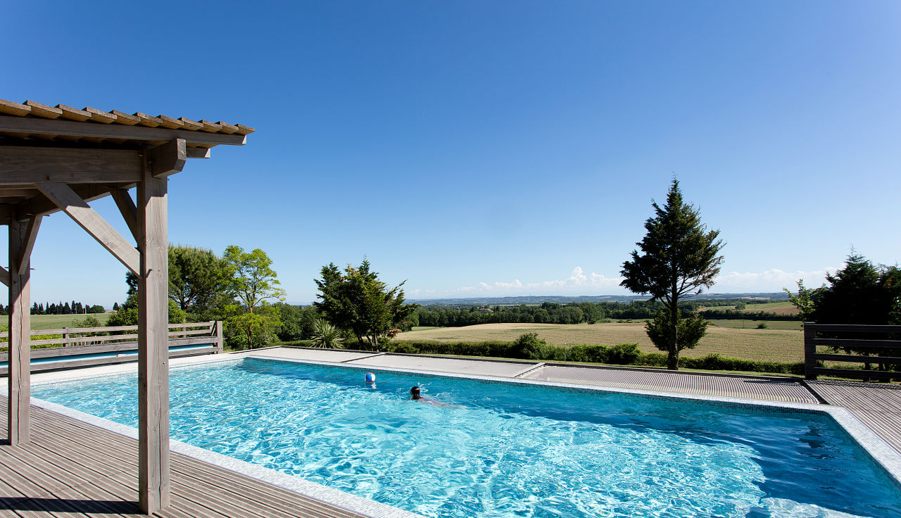 Bonheur assuré ! Le bassin de 13m par 5m est entouré d'une plage bois et d'une plage filet de catamaran. Après la baignade vous profiterez des transats géants, d'une douche solaire ou du salon d'été avec vue imprenable sur la chaîne des Pyrénées.