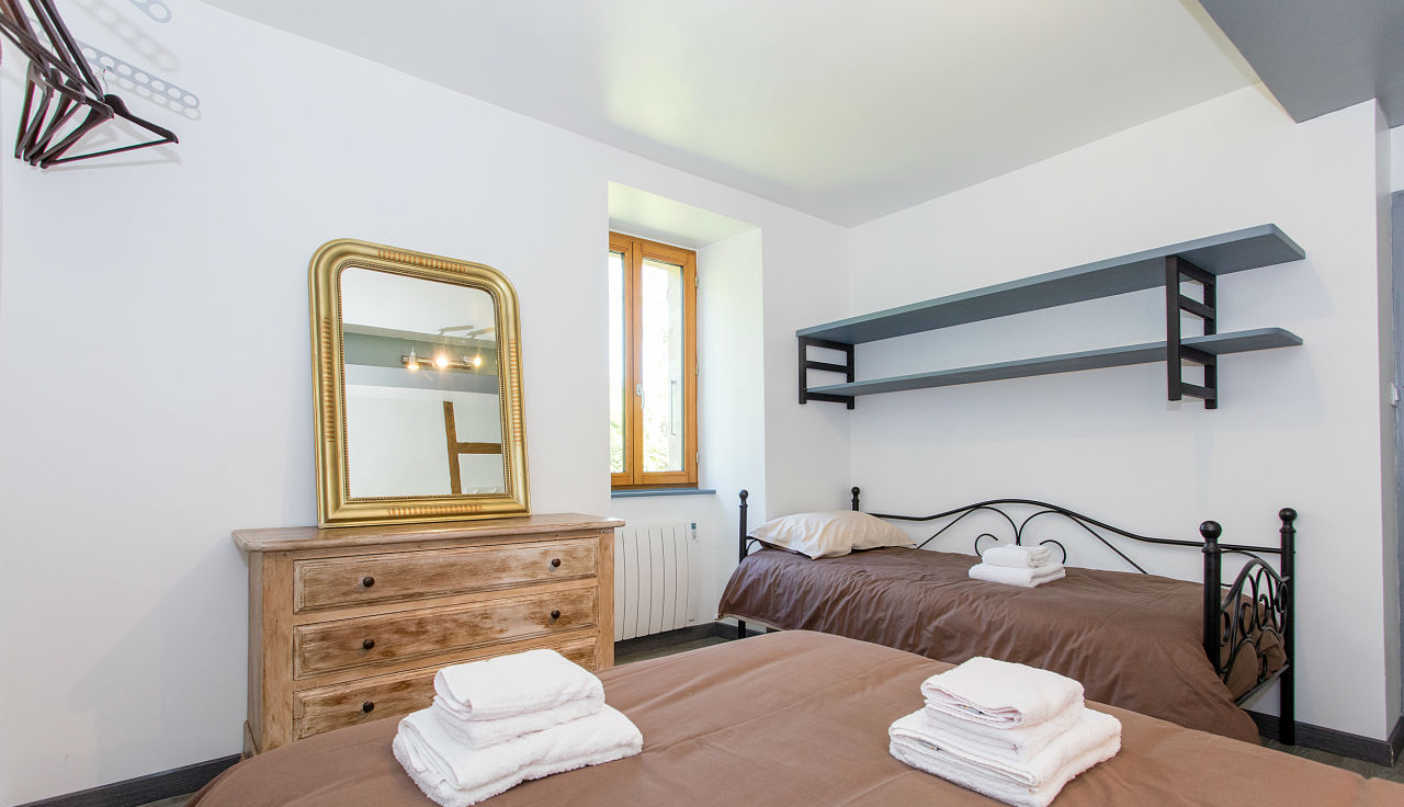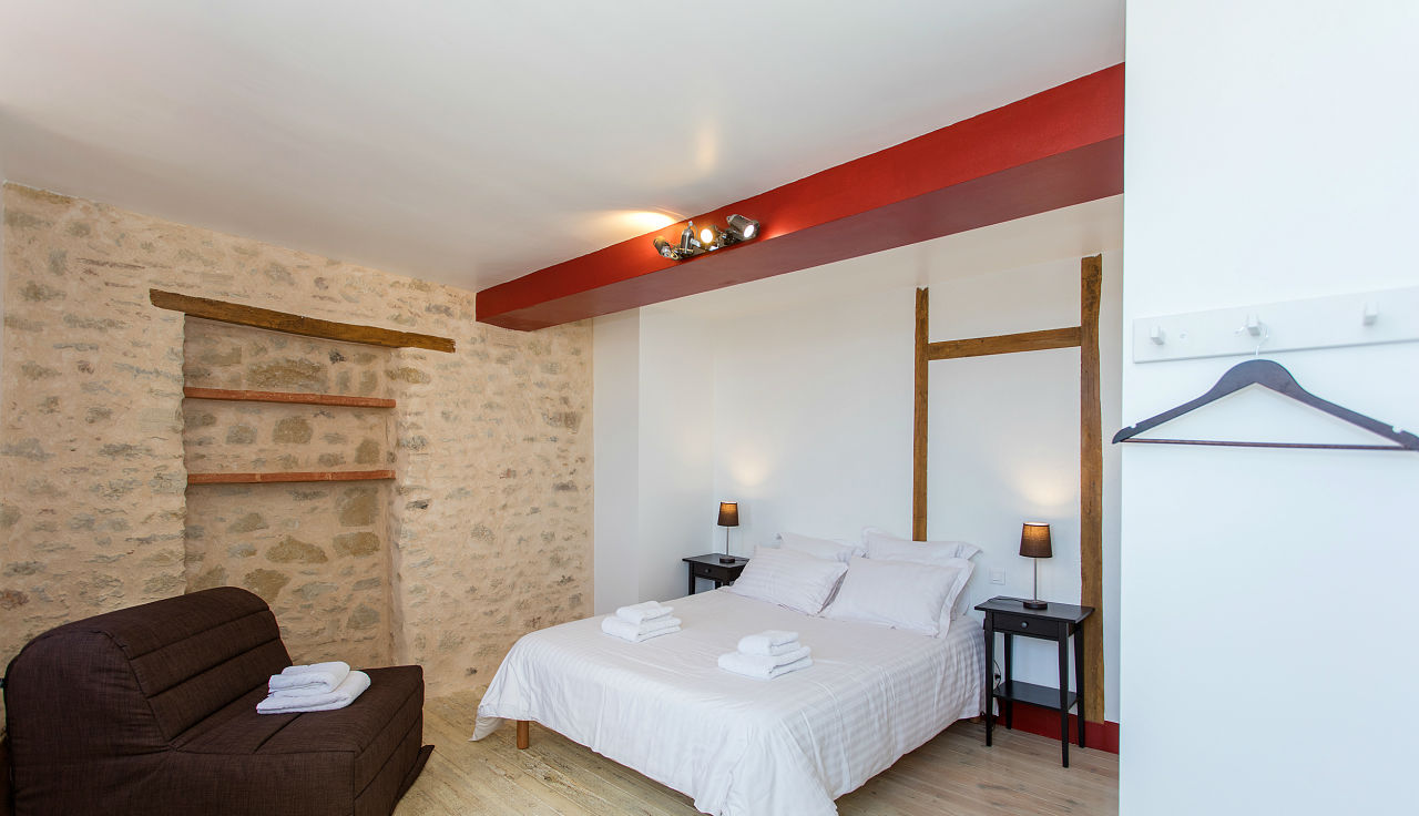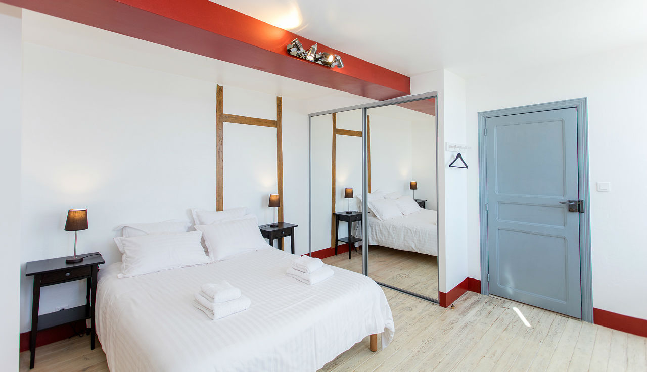 Pour les chambres nous avons optée pour une décoration aux couleurs douces. Très spacieuses aussi (12m² et 16m²), ces chambres sont dotées d'un lit double et de lits simples. La salle d'eau se trouve sur le même palier.